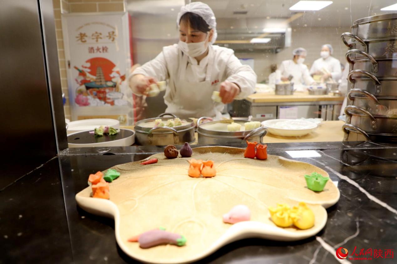 德發(fā)長創(chuàng)建于1936年,作為一家中華老字號,一道具有濃郁文化特色的“千古風(fēng)味”餃子宴已然成為西安的一張“金色名片”。高珊是德發(fā)長鐘樓店的一名非遺傳承人,那些倍受顧客歡迎、形狀各異的餃子正是出自她們團(tuán)隊(duì)之手。