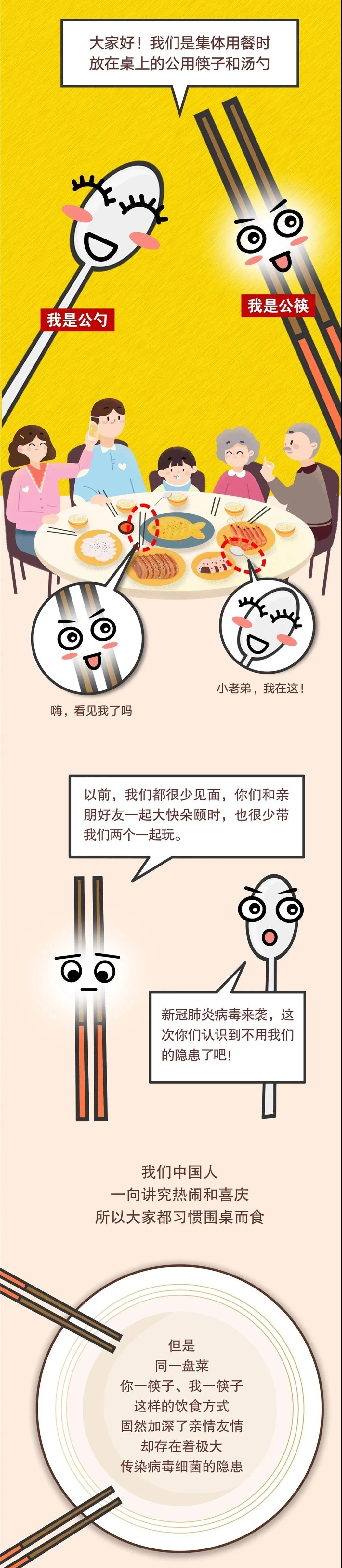 餐桌舉止非小事,一筷一勺見文明,親情友情不可少,防病除菌更重要,所以請養(yǎng)成使用公筷公勺的良好習慣!為有效防止病毒在餐桌上蔓延,讓安全、健康、文明的用餐方式,惠及每個家庭、每位居民。