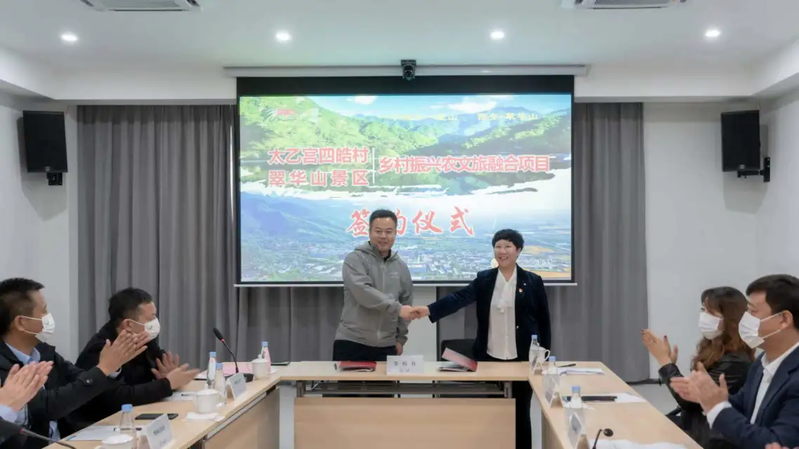 田園風(fēng)光秋韻濃,紅葉漫山醉翠華。按照西旅集團(tuán)“6+N”產(chǎn)業(yè)布局,積極響應(yīng)國家鄉(xiāng)村振興戰(zhàn)略,助力美麗鄉(xiāng)村建設(shè),加快“景區(qū)+鄉(xiāng)村”融合步伐。10月20日,終南山公司翠華山景區(qū)與長安太乙宮四皓村舉辦鄉(xiāng)村振興農(nóng)文旅項(xiàng)目合作簽約儀式。長安區(qū)文化和旅游體育局、長安區(qū)農(nóng)業(yè)農(nóng)村局、太乙宮街道辦、長安區(qū)鄉(xiāng)村振興公司、四皓村、終南山公司、翠華山景區(qū)等單位及鄉(xiāng)賢代表參加簽約儀式。