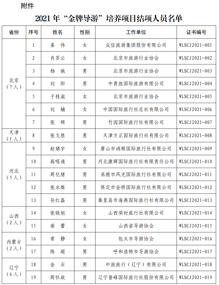 2021年“金牌導(dǎo)游”培養(yǎng)項(xiàng)目結(jié)項(xiàng)人員名單的通知